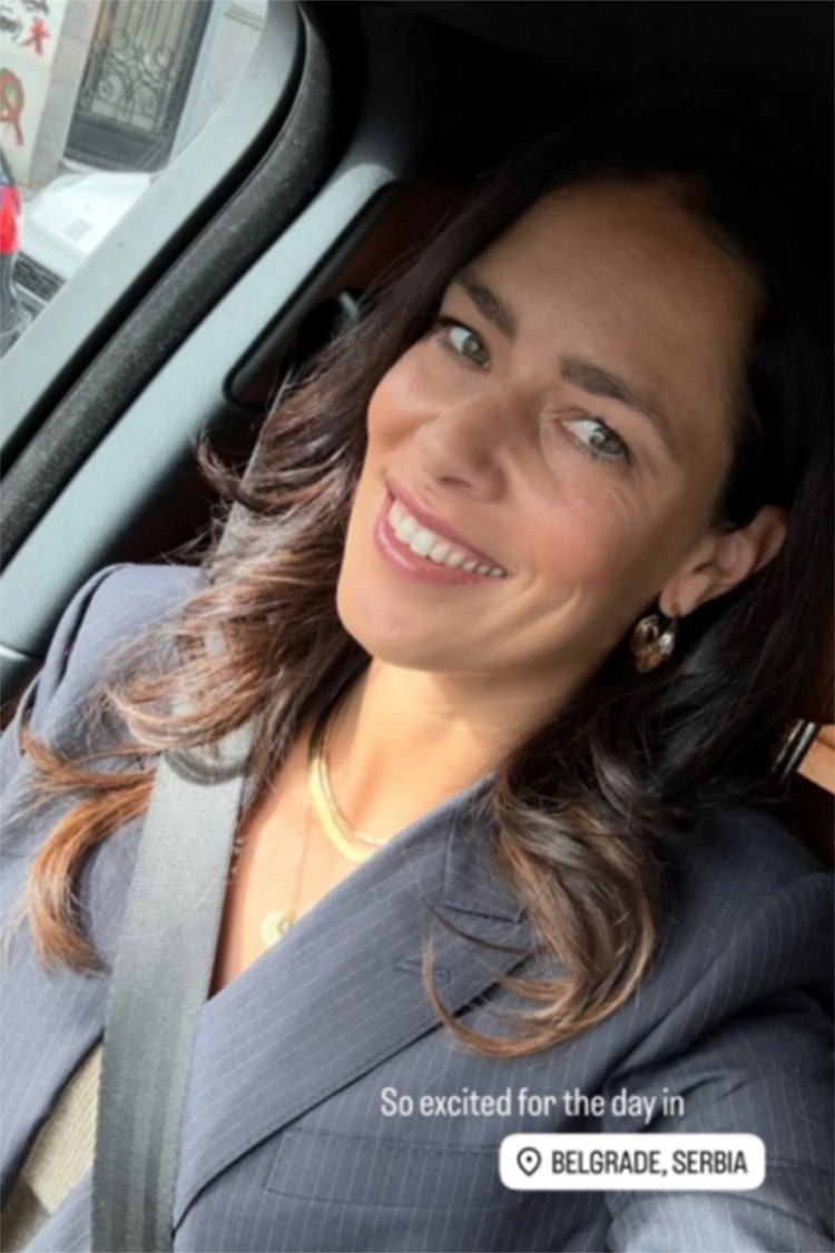 Ana je na Instagramu objavila fotografiju iz automobila, gdje je blistala u elegantnom izdanju – nosila je odijelo u svijetlim tonovima, krem bluzu i zlatni nakit koji je savršeno upotpunio njen izgled.