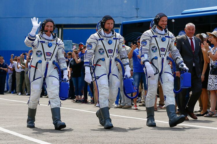 Sa kosmodroma Bajnour u Kzahstanu poletjeli su Sergej Prokopjev iz ruske svemirske agencije Roskosmos, Serena Aunjon-Čenselor iz NASA, i Nijemac Aleksander Gerst iz ESA.