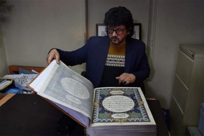 Tim od 38 kaligrafa i slikara minijaturista radilo je skoro dvije godine na tom umjetničkom delu s kožnim povezom i teško 8,6 kilograma.