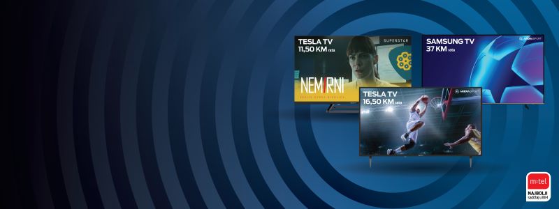 m:tel vam, u okviru ove ponude nudi televizore Tesla 32“, po cijeni od 11,50 KM za ratu, Tesla 40“ – za 16,50 KM po rati ili Samsung 43“ Smart za 37 KM po rati.