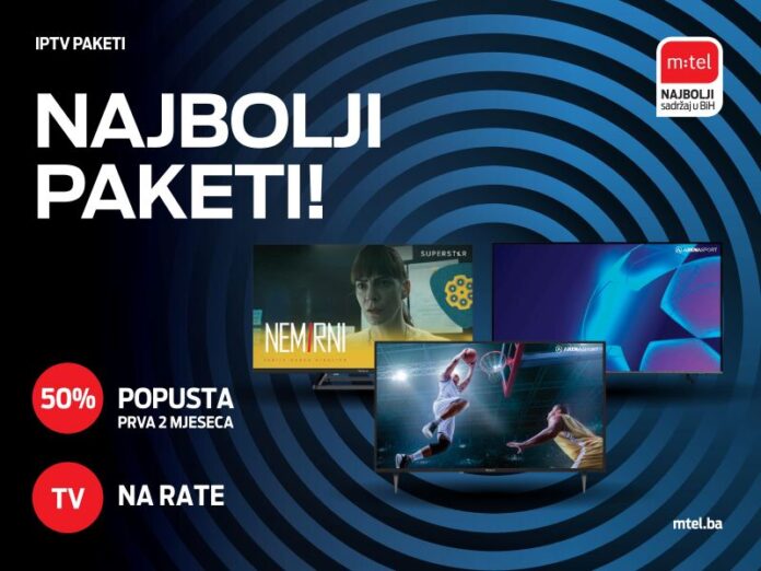 m:tel vas poziva da iskoristite promotivnu ponudu – izaberite IPTV paket po svojoj želji, uz popust od 50 posto na pretplatu dva mjeseca, a kao dodatnu povlasticu odobrava vam i kupovinu televizora na rate!
