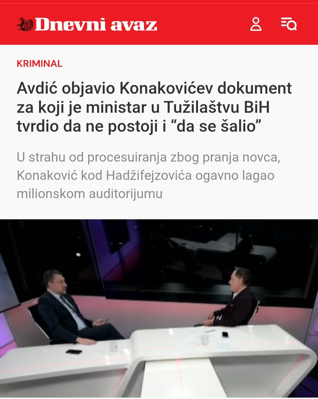 Federalni portali objavili su faksimil ugovora koji je Ministarstvo spoljnih poslova u Savjetu ministara 28. marta potpisalo sa lobističkom kućom u SAD, za koji Konaković tvrdi da je to “nemoguće” jer bi bilo “nezakonito da je potpisao ugovor”.