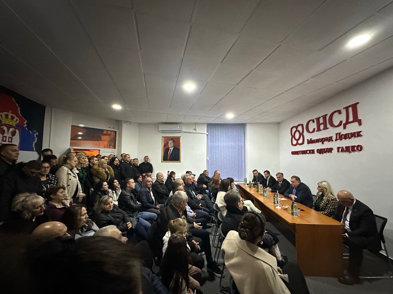 Predsjednik SNSD Milorad Dodik i kandidat za predsjednika Republike Srpske Siniša Karan večeras su posjetili Gacko gdje su u prstorijama SNSD-a razgovarali sa članstvom.