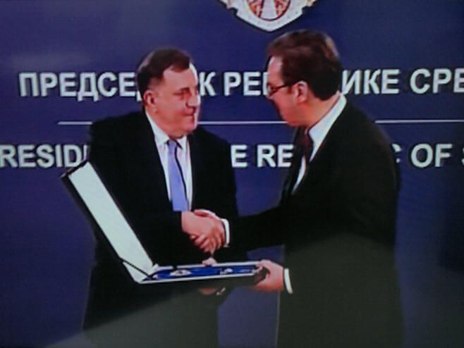 Predsjednik Republike Srpske Milorad Dodik donio je Ukaz o dodjeli odlikovanja predsjedniku Republike Srbije Aleksandru Vučiću.