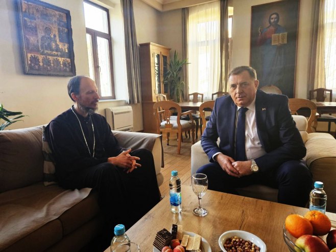 -Prijateljski i srdačan razgovor s episkopom zahumsko-hercegovačkim Dimitrijem. Saradnja institucija Republike Srpske i Srpske pravoslavne crkve je na zavidnom nivou, što je konstatovano i prilikom današnjeg susreta s episkopom – napisao je Dodik na Tviteru.