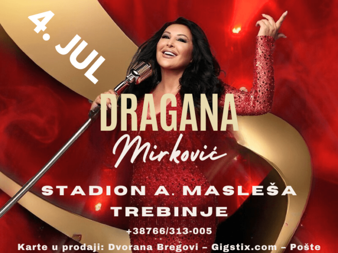 Na stadionu “Aleksandar Masleša” u Bregovima 4. jula zakazan je koncert jedne od najpopularnijih i najomiljenijih pjevačica regiona – Dragane Mirković.
