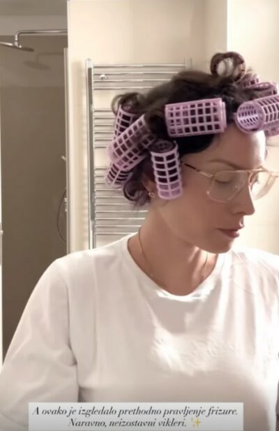 Glumica Mirka Vasiljević oduševila je pratioce na Instagramu nakon što je pozirala u kupatilu sa viklerima na glavi, a lice joj je bilo skroz bez šminke.