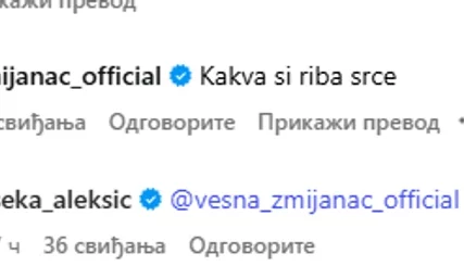 Naime, Vesna joj je među prvima komentarisala objavu i napisala: “Kakva si riba, srce”, a Seka joj je odmah odgovorila: “Volim te”.