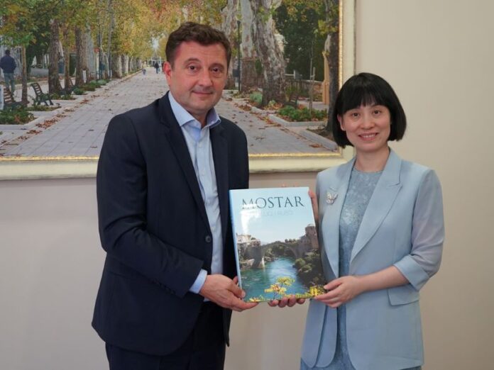 U znak zahvalnosti za jačanje partnerskih odnosa između BiH i Kine, gradonačelnik Kordić je ambasadorici Li Fan poklonio monografiju grada “Mostar u slici i riječi”.