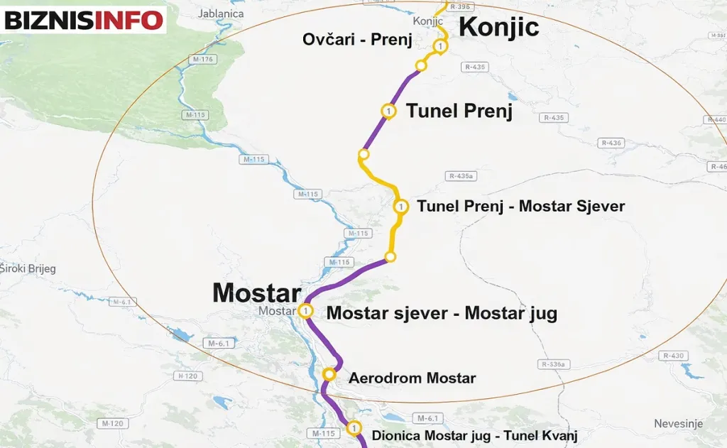 Između ove dvije dionice nalazi se i dionica Tunel Prenj (izlaz) – Mostar Sjever, koja je trenutno najmanje odmakla u pripremama i za koju još nisu provođene tenderske procedure.