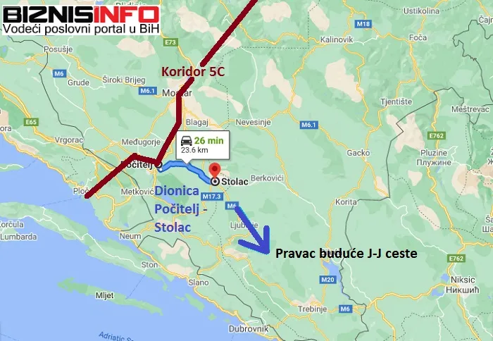 Riječ o putu koji bi se odvajao od Koridora 5C kod Počitelja. Dok bi Koridor 5C nastavljao prema Pločama, Jadransko-jonski auto-put bi vodila prema Stocu, a zatim dalje prema granici s Crnom Gorom.