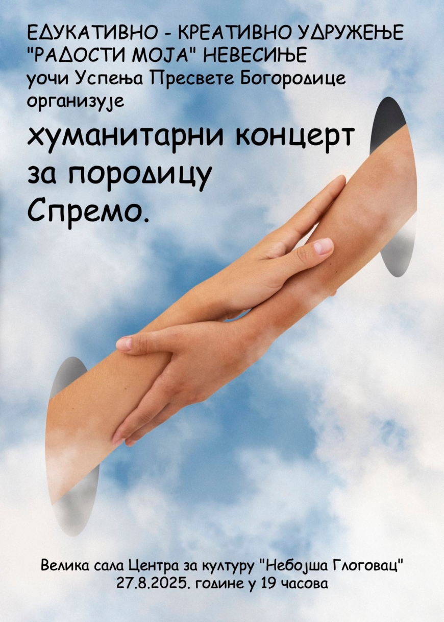 Predsjednik edukativno-kreativnog udruženja ”Radosti moja” Branka Vukosav, koja je inače profesor klavira u Osnovnoj muzičkoj školi ”Sveti Roman Melod” Nevesinje navodi da je sa svojim udruženjem pripremila koncert koji je posvećen Uspenju Presvete Bogorodice, a nakon toga su odlučili da bude humanitarnog karaktera.