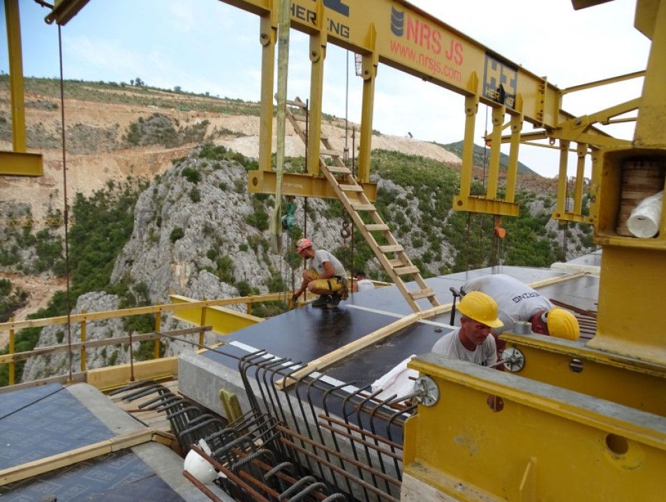 U sljedećoj fazi, rekao je, uslijediće spajanje konzola sa susjednim stubovima od S3 i S4. Na S2, koji je najveći od 97 metara i, čije su, praktično, kopije svi ostali stubovi, izvedena su, već, četiri segmenta rasponske konstrukcije.