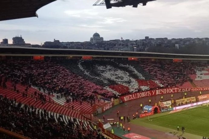 Navijači su odmah zapjevali “‘Ajmo svi u glas, Siniša Mihajlović jedan je od nas…”, dok su sa razglasa čule posljednje riječi Zvezde za bombardera “Nebo se otvorilo, čuvaj nam Zvezdu…” sa jasnom aluzijom.