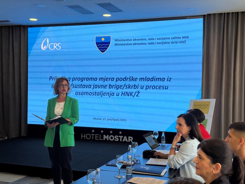 Mladi koji izlaze iz sistema javne brige zaslužuju sistemsku podršku i stvarne šanse za dostojanstven život, i upravo s tim ciljem, Ministarstvo zdravstva, rada i socijalne skrbi Hercegovačko-neretvanskog kantona (HNK) predstavilo je u utorak u Mostaru, u saradnji s organizacijom Catholic Relief Services (CRS), Prijedlog programa mjera podrške mladima u procesu osamostaljenja.