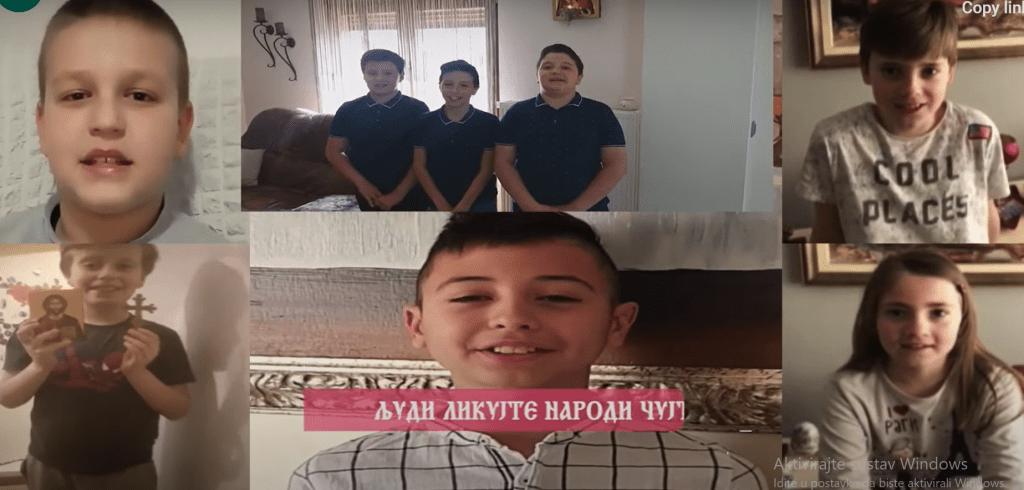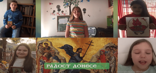 ”Piše vam mostarska vjeroučiteljica Tijana sa svojim đacima. Želimo vam čestitati Vaskrs, zagrliti vas na ovaj virtuelni način i podijeliti našu radost sa svima vama. Naši klipovi/snimci su jedan od plodova nastave u doba korone. Iako ne možemo fizički biti zajedno, u srcima i u pjesmi uvijek možemo. Zahvaljujemo se našim vladikama – Dimitriju, Grigoriju, i Atanasiju, koje ćete, takođe, vidjeti na snimcima. Veliko hvala i ocu Teofilu Petroviću, iz manastira Tvrdoš, koji nam je pomogao prilikom montaže. Hvala i (mojim) dragim roditeljima na saradnji! Šaljemo vam neizmjernu ljubav! Hristos vaskrse! Radujte se”, napisala je vjeroučiteljica Tijana Bašić u poruci uz tri video čestitke koje su objavljene na sajtu Eparhije zahumsko-hercegovačke i primorske.