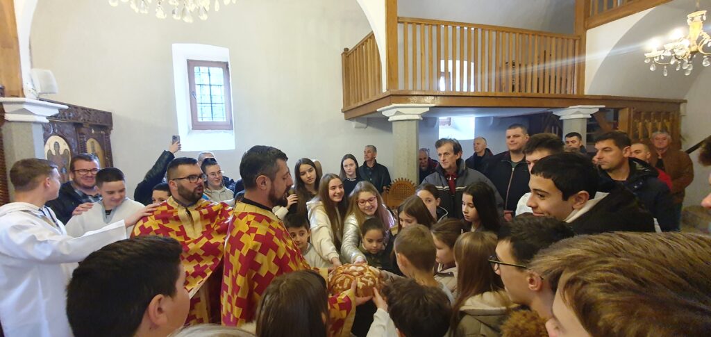 Učenici mostarskih osnovnih škola koji pohađaju pravoslavnu vjeronauku proslavili su danas u Staroj crkvi u Mostaru praznik Svetog Save, koji se proslavljao kao školska slava i prelomili slavki kolač.