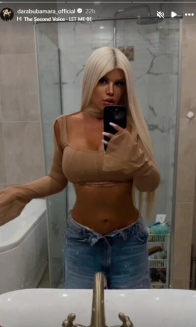 Pored toga što je pokazala da je ovakvi skandali ne mogu slomiti, Dara Bubamara svojim pratiocima redovno dokazuje da izgleda bolje nego ikad. Dara se slikala u kupatilu, a na fotografiji se u ogledalu jasno vidi kako je otkopčala farmerke i sa ponosom pokazala svoj nikad uži struk.