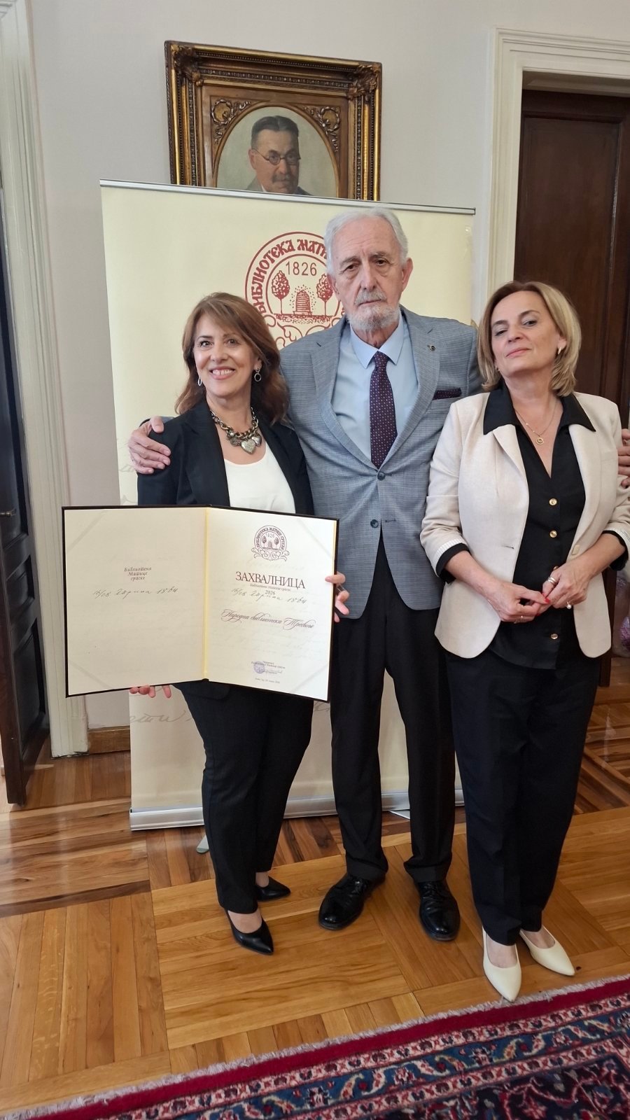 Priznanje je direktoru Narodne biblioteke Trebinje Milosavi Supić Vuković uručeno na svečanosti povodom 200 godina od osnivanja Matice srpske, jedne od nastarijih i najznačajnijih institucija kulture.