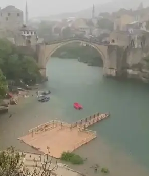 Njena snaga odnijela je platformu ispod Starog mosta, koja očigledno nije bila dovoljno učvršćena da izdrži povećani vodostaj.