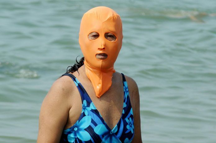 Uz bikinije, Kinezi po novom nose i facekinije, komade tkanine koji su dizajnirani kako bi spriječili da lice izgori prilikom kupanja na plaži.