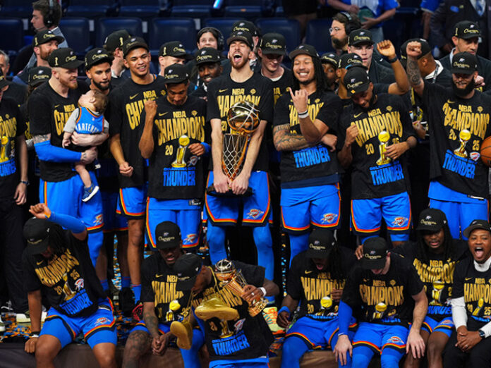 -Košarkaši Oklahoma Siti Tandera postali su jutros prvi put šampioni NBA lige, pošto su na svom terenu savladali Indijanu rezultatom 103:91 u sedmom meču finala plej-ofa i tako sa 4:3 u pobjedama trijumfovali u seriji.