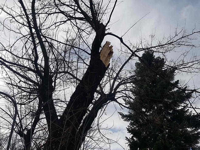 Centar je tokom prepodneva primio više dojava građana o padu stabala i grana na saobraćajnice i parkirana vozila, padanju dijelova fasade sa zgrada, oštećenju limova na krovovima, semafora i telefonskih stubova.