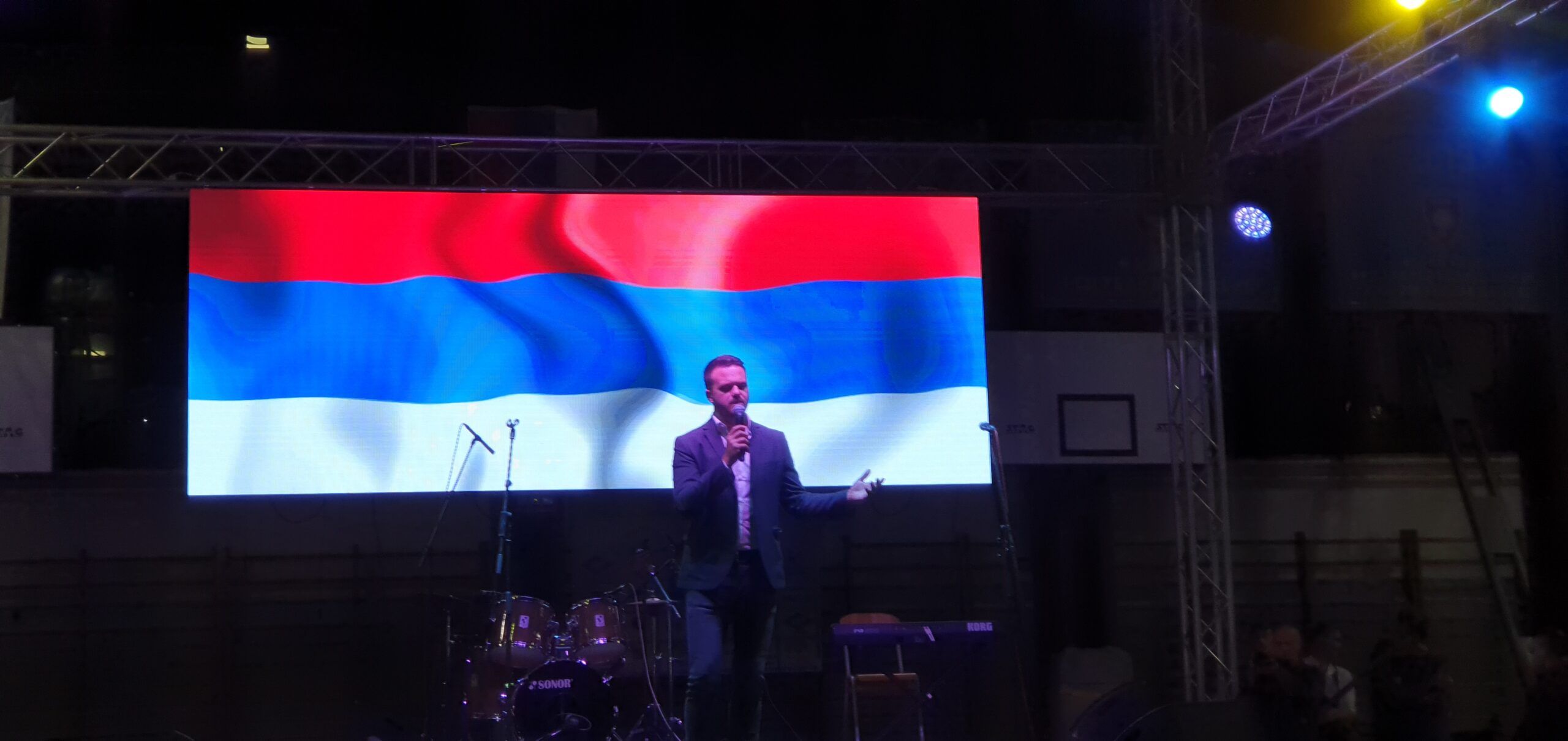 Avdalović je izrazio žaljenje što manifestacija nije održana kao i ranije na trgu zbog vremenskih uslova, no drago mu je što su tu večeras bili gosti iz cijele Republike Srpske, Crne Gore, Srbije i svih krajeva Evrope.