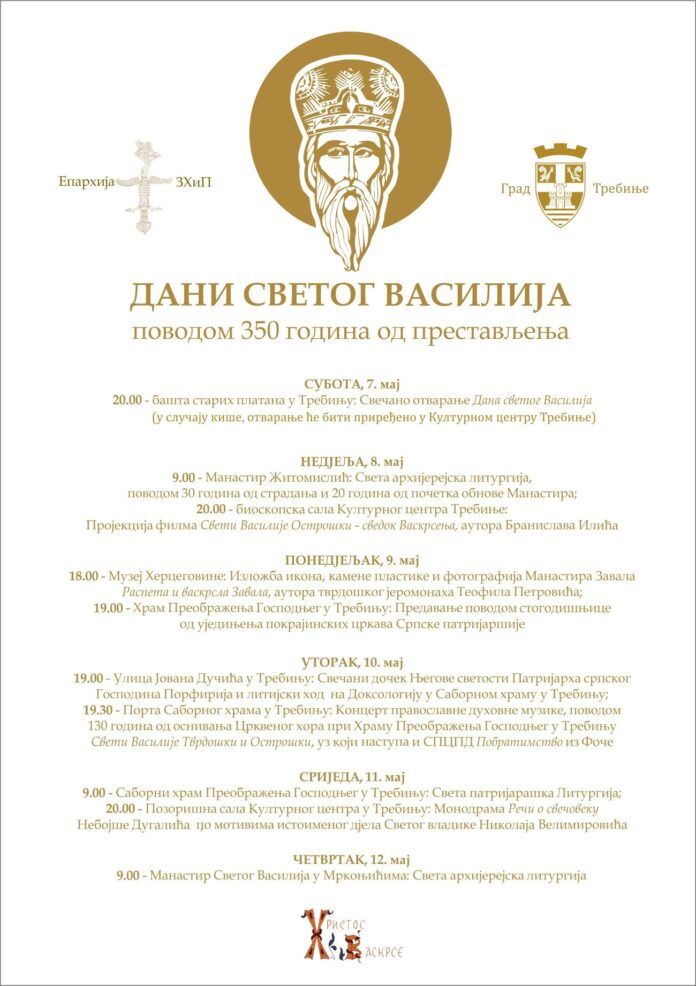 “Dane Svetog Vasilija Tvrdoškog i Ostroškog” organizuju Eparhija zahumsko-hercegovačka i primorska i Gradska uprava Trebinja.