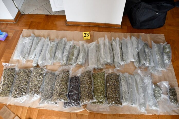 Pretresom stana u kojem su neprijavljeno boravili pronađeno je 25 kilograma marihuane, oko 11 kilograma tableta MDMA /ekstazi/, oko pet litara amfetaminskog ulja, oko 900 grama kokaina, oko 4,5 kilograma amfetamina, oko 500 grama hašiša, oko 100 grama psihoaktivnih pečuraka.