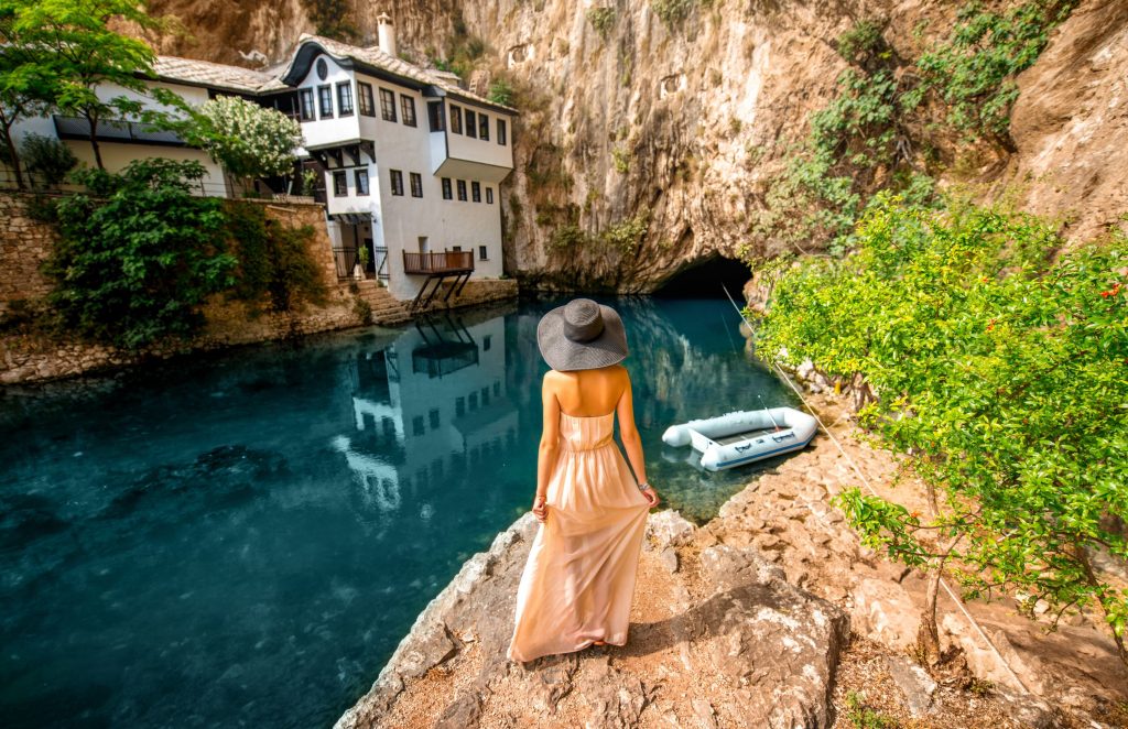 Samo 12 km od Mostara nalazi se čuveno Vrelo rijeke Bune, najjači kraški izvor na teritoriju Evrope sa prosječnim godišnjim protokom vode od 43 m³ u sekundi. Izvor se nalazi ispod kamene litice visoke 200 m, a u blizini samog izvora je sagrađena i Derviška Tekija, koja sa okolnom prirodom čini jedinstvenu i neponovljivu cjelinu. Voda izvire iz pećine široke 15-estak metara, a francuski ronioci su istražili da je podzemni tok vrela Bune dug oko 200metara. Voda je izuzetno hladna i čista i predstavlja stanište endemske vrste potočne pastrmke.