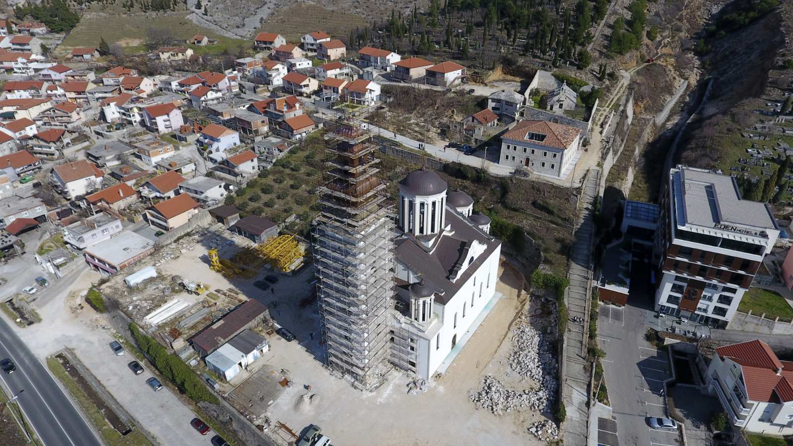 Postavljanjem posljednjeg od sedam pozlaćenih krstova završeni su grubi građevinski radovi na ovom hramu čija obnova je počela u oktobru 2010. godine.