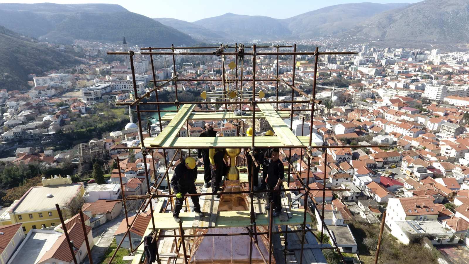 Na zvonik Saborne crkve Svete Trojice u Mostaru danas je postavljen pozlaćeni krst od tri i po metra visine čime je ova bogomolja, nakon skoro tri decenije, ponovo izdigla nad Mostarom u punom sjaju i ljepoti.