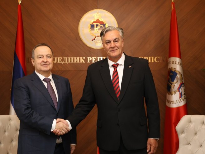 Sastanak Karana i Dačića u Banjaluci (FOTO) 18.04.2026 11:22 Predsjednik Republike Srpske Siniša Karan sastao se danas u Banjaluci sa ministrom unutrašnjih poslova i potpredsjednikom Vlade Republike Srbije Ivicom Dačićem. Sastanak je održan u Palati Republike.