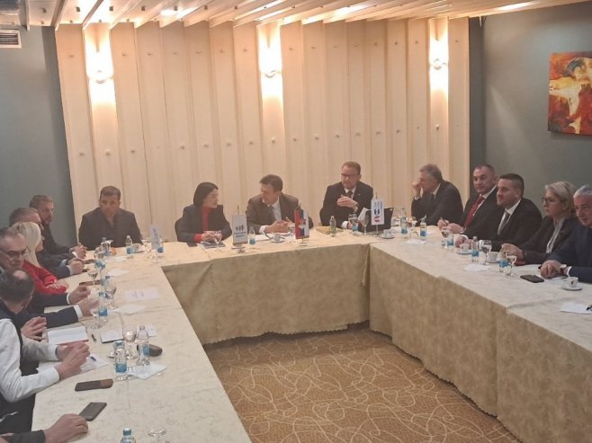 Sastanak u Banjaluci SDS, PSS, Narodnog fronta i Liste za pravdu i red (FOTO) 02.04.2026 14:19 U Banjaluci zajednički sastanak Srpske demokratske stranke, Pokreta Sigurna Srpska, Narodnog fronta i Liste za pravdu i red. Sastanak se održava na inicijativu predsjednika SDS Branka Blanuše, a tema je dogovor o kandidatima za izbore.