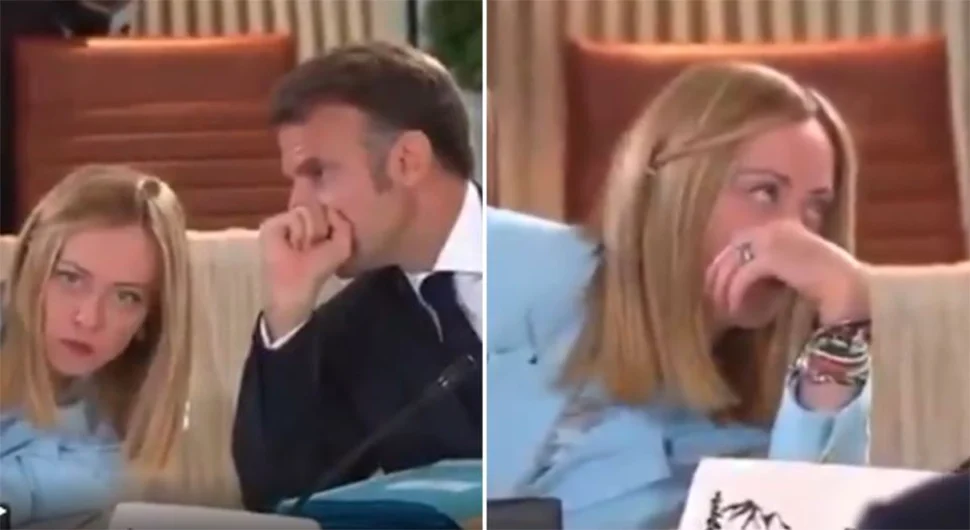 Premijerka Italije Đorđa Meloni sjedila je pored francuskog predsjednika Еmanuela Makrona. Pred sam početak sastanka, Makron je nešto šapnuo na uvo Meloni nakon čega je ona prevrnula očima.
