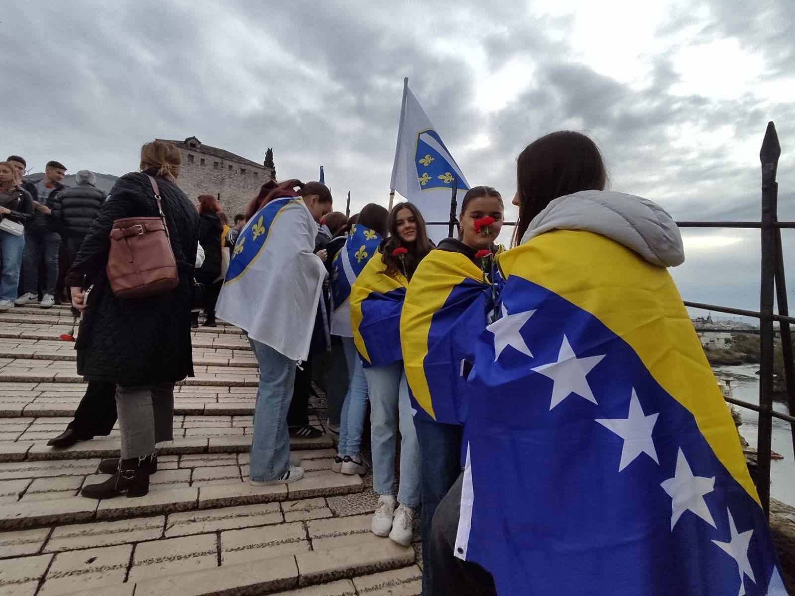 Uz zvuk sirene za opasnost, spuštanje ljiljana i skokom bez aplauza koji je izveo mladi skakač Emel Tiro danas je obilježena 32. godišnjica rušenja Starog mosta u Mostaru.