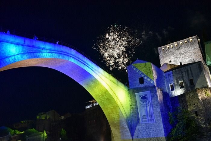 Ovim povodom upriličena je nesvakidašnja iluminacija na pročelju Starog mosta, koju su pratili vatromet i taktova Šantićeve „Emine“ na trubi, za koju je notni zapis napisao maestro Đelo Jusić.