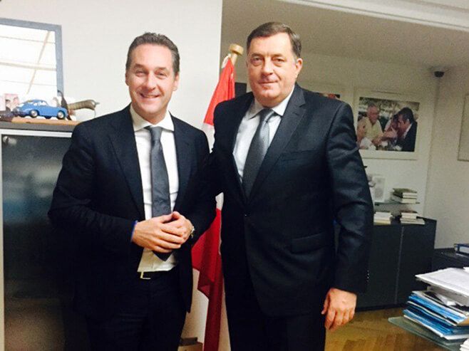 Јedan od lidera vladajuće koalicije Hajnc-Kristijan Štrahe otvoreno podržava politiku predsjednika Srpske Milorada Dodika i kritikuje odnos Zapada prema Kosovu i Metohiji.
