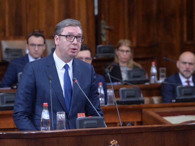 Šest zahtjeva koje je postavio premijer privremenih prištinskih institucija Aljbin Kurti za formiranje Zajednice srpskih opština (ZSO) su sprdnja, i to više sa međunarodnom zajednicom nego sa Beogradom, rekao je predsjednik Srbije Aleksandar Vučić na posebnoj sjednici Skupštine Srbije na kojoj se raspravlja o KiM.