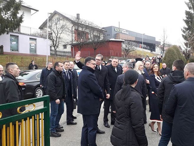 Vučića je ispred Gimnazije dočekao i premijer Srpske Radovan Višković i predsjedavajući Savjeta ministara Zoran Tegeltija.