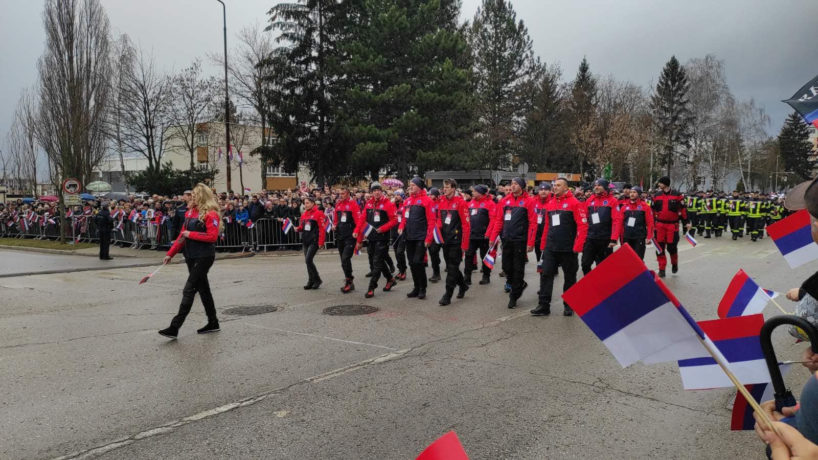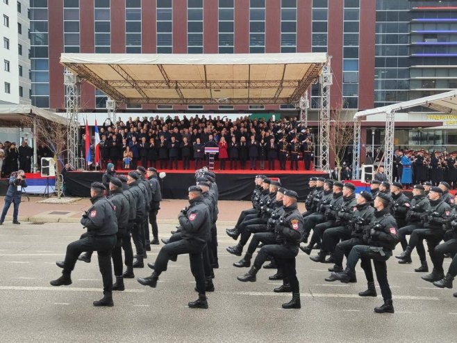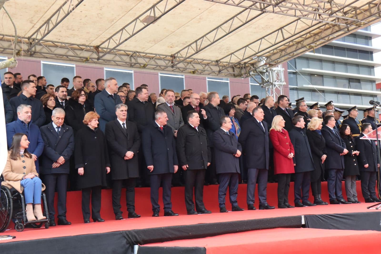 Nakon obraćanja predsjednika Republike Srpske Milorada Dodika intoniranja himni Republike Srpske i Srbije “Moja Republika” i “Bože pravde” i gromoglasno otpjevane pjesme “Pukni zoro” pripadnika Ministarstva unutrašnjih poslova Republike Srpske svečano je završen defile organizovan povodom Dana Republike Srpske.
